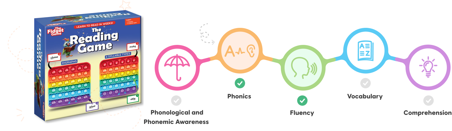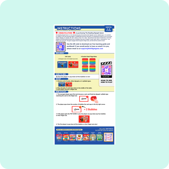 The Reading Game uses a systematic, multi-sensory approach aligned with the Science of Reading principles, which is proven to be effective for children with dyslexia and other learning challenges. The focus on digraphs and syllable patterns helps break down complex words into manageable parts, making reading more accessible and less overwhelming.
