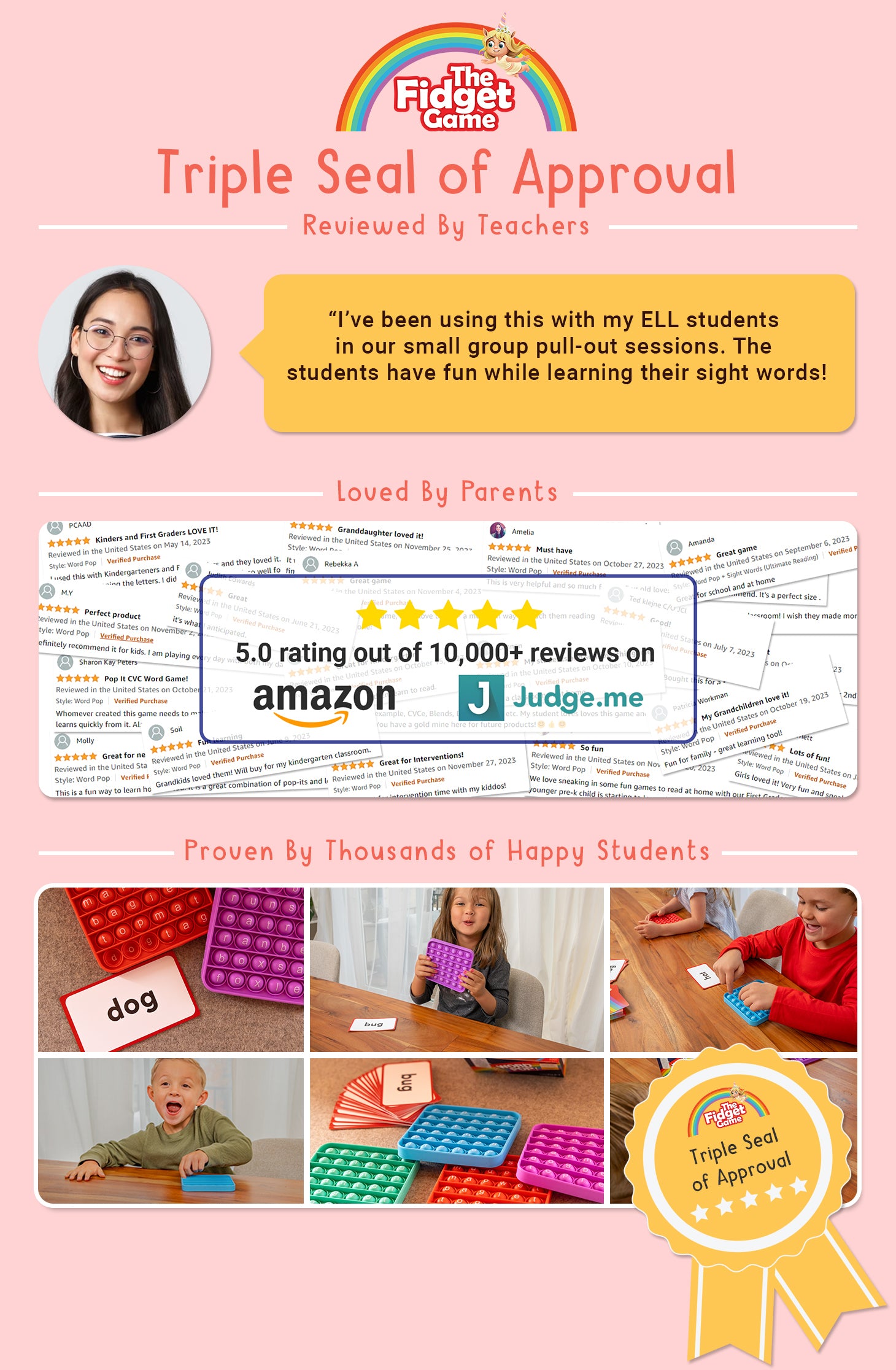 The Fidget Game rocketed onto the market in 2021 and immediately started making waves on social media, in the news, and on TV programs such as Shark Tank. Now, it’s one of the highest-rated reading game companies, with over 10,000 5-star reviews!